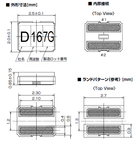 頻率公差 ±30×10-6,±50×10-6,±100×10-6(at25℃)