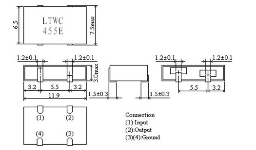 陶瓷濾波器,貼片陶瓷晶振,LTWC455E,千赫茲壓電陶瓷貼片型產(chǎn)品,一般電子產(chǎn)品用標準頻率公差型,利用本公司獨創(chuàng)的封裝技術,實現(xiàn)了千赫頻率陶瓷濾波器,貼片陶瓷濾波器體積小,只有4.0mm max.厚度,且有更小的貼裝面積,方便 PCB 彈性設計,有多種帶寬可供選擇,組件可用自動機貼裝,可用波峰焊,耐水洗,并且此濾波器可以與村田晶振CFUCG 系列相容,此種新式濾波器結構可以更完美的安裝在可移動的通訊產(chǎn)品中,如手機,袖珍型呼叫器等消費類電子產(chǎn)品.