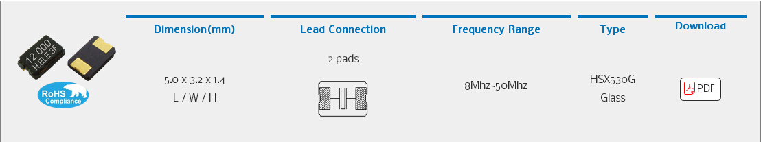 HSX530G諧振器,臺灣進(jìn)口石英晶體諧振器,HELE晶振小型表面貼片晶振型,是標(biāo)準(zhǔn)的石英晶體諧振器,適用于寬溫范圍的電子數(shù)碼產(chǎn)品,家電電器,播放器,單片機(jī)等領(lǐng)域.可對應(yīng)8.000MHz以上的頻率,在電子數(shù)碼產(chǎn)品,以及家電相關(guān)電器領(lǐng)域里面發(fā)揮優(yōu)良的電氣特性,滿足無鉛焊接的回流溫度曲線要求.