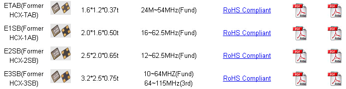 諧振器HCX-2SB2520,HCX-1AB2016,HCX-TAB1612晶振小型貼片石英晶振主要采用了,先進的晶片的拋光工藝技術,是晶體行業中石英晶片研磨技術中表面處理的最高技術,最終使晶片表面更光潔,平行度及平面度更好,大大的降低諧振電阻,使精度得到了很大的提升.改變了傳統的生產工藝,使產品在各項參數得到了很大的改良.,外觀尺寸具有薄型表面貼片型石英晶體諧振器,特別適用于有小型化要求的市場領域,比如智能手機,無線藍牙,平板電腦等電子數碼產品