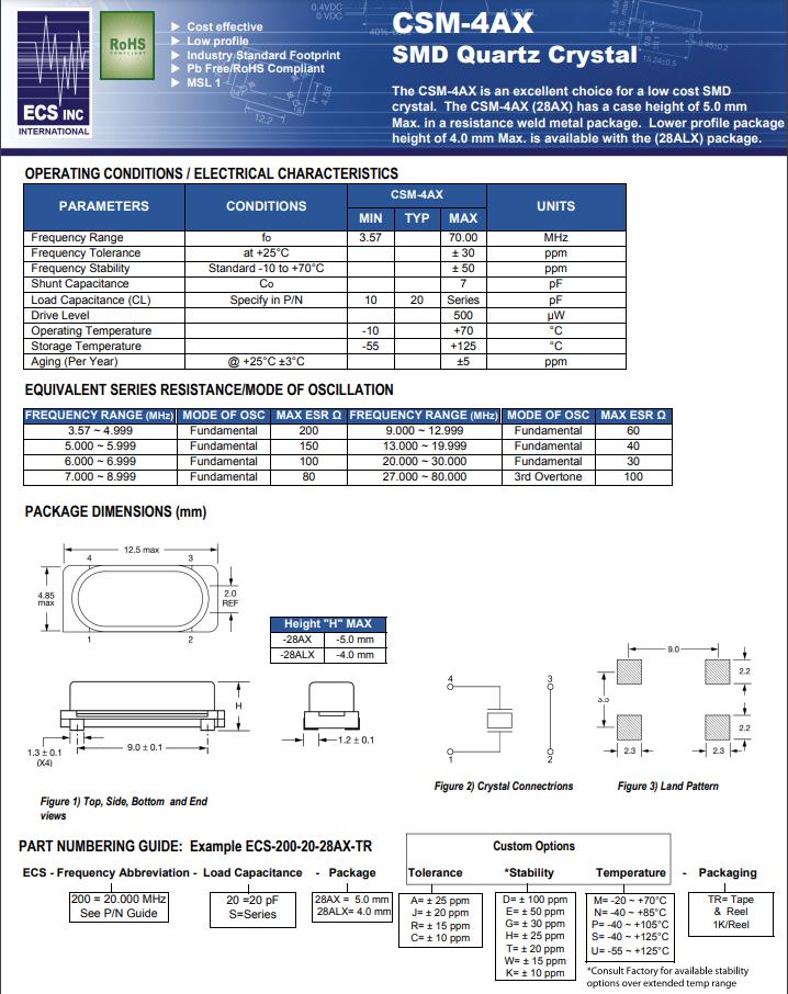 ECS-40-20-28AX-TR | CSM-4AX | MHz Crystal | 4MHz |