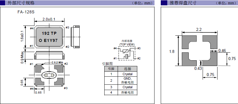 進口晶體振蕩器的不正確安裝會導致故障以及崩潰,因此安裝時,請檢查安裝方向是否正確.愛普生晶振,石英晶振,FA - 128S晶振,壓電石英晶體諧振器。