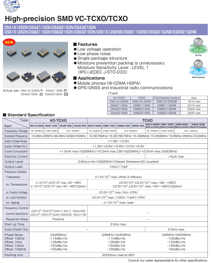 DSB211SDN削波正弦波晶振,移動(dòng)電話有源晶振聲表面諧振器