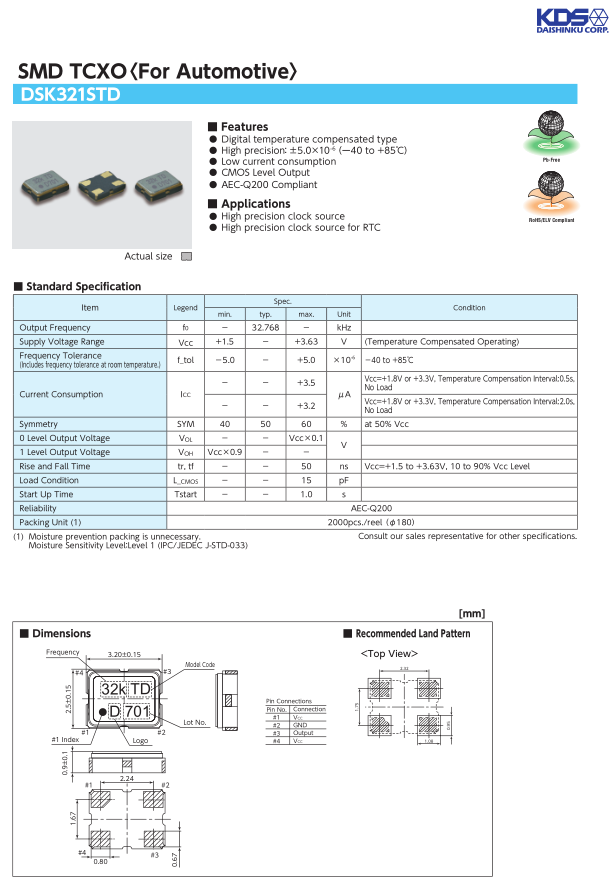 DSK321STD 3225 32.768K TCXO 2.8-3.3V 5.0PPM