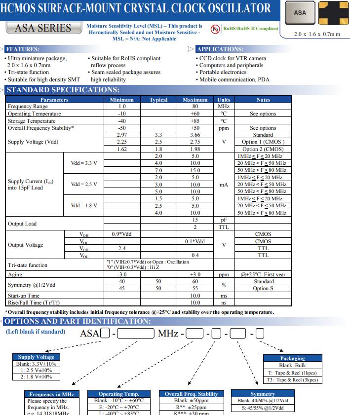 ASA-16.000MHZ-L-T | Abracon晶振 | ASA | XO (Standard) | 16MHz | 3.3V | -40°C ~ 85°C |