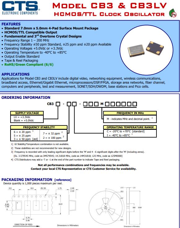 CB3-3I-33M3330 | CTS-Frequency Controls | CB3 | 33.333MHz | ±50ppm |
