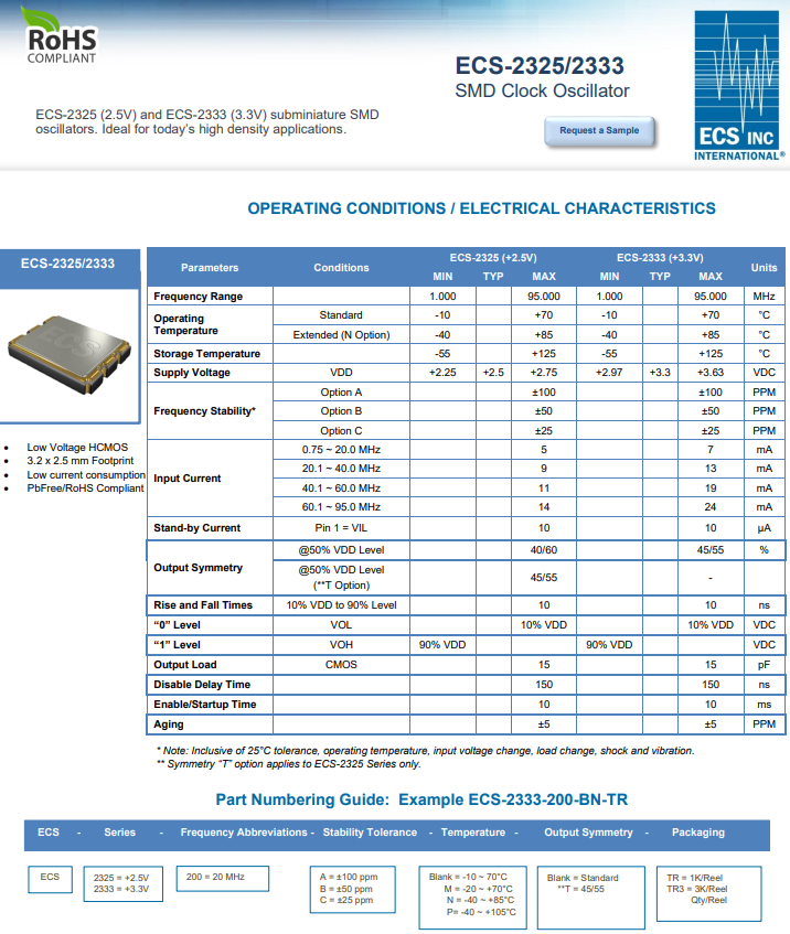 ECS-2333-330-BN-TR | OSC XO 33.000MHZ CMOS SMD | ECS-2333 | 3225 | 4 |