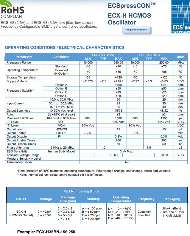 ECX-H25BN-66.666 | ECS晶振 | ECSpressCON™ ECX-H | 66.666MHz | -40°C ~ 85°C |