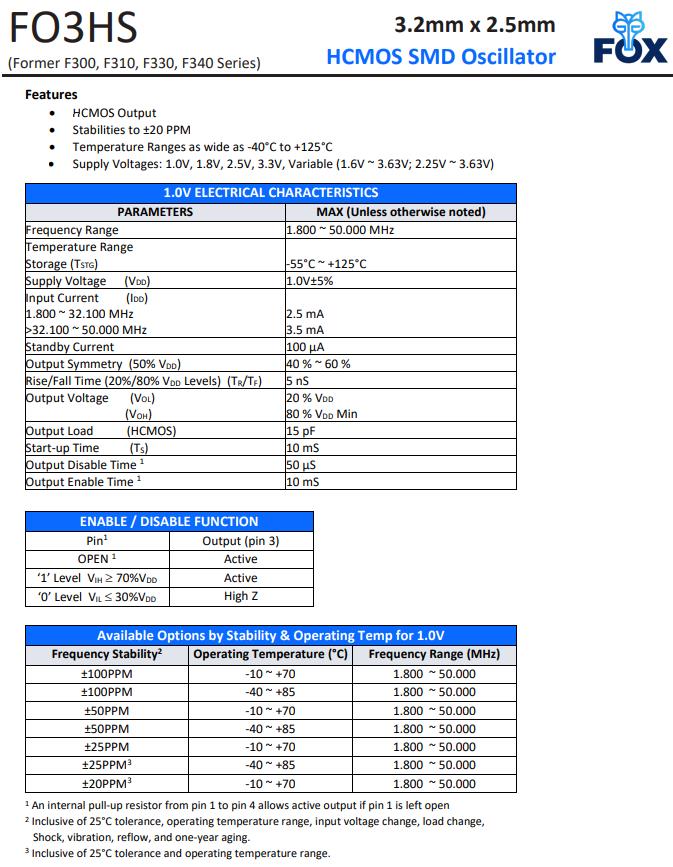 F335-50 | Fox振蕩器 | F335 | XO (Standard) | 50MHz | 3.3V |