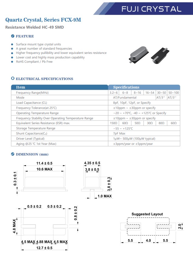 更多>>FCX9M01200020Y5Z FCX-9M 49SMD 12M 20PF富士貼片晶振藍牙通信無線電