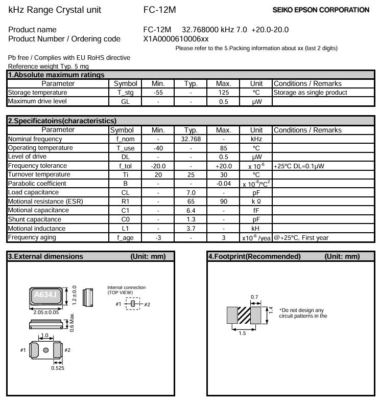 X1A0000610006 EPSON FC-12M 2012 32.768K 7PF 20PP -40+85