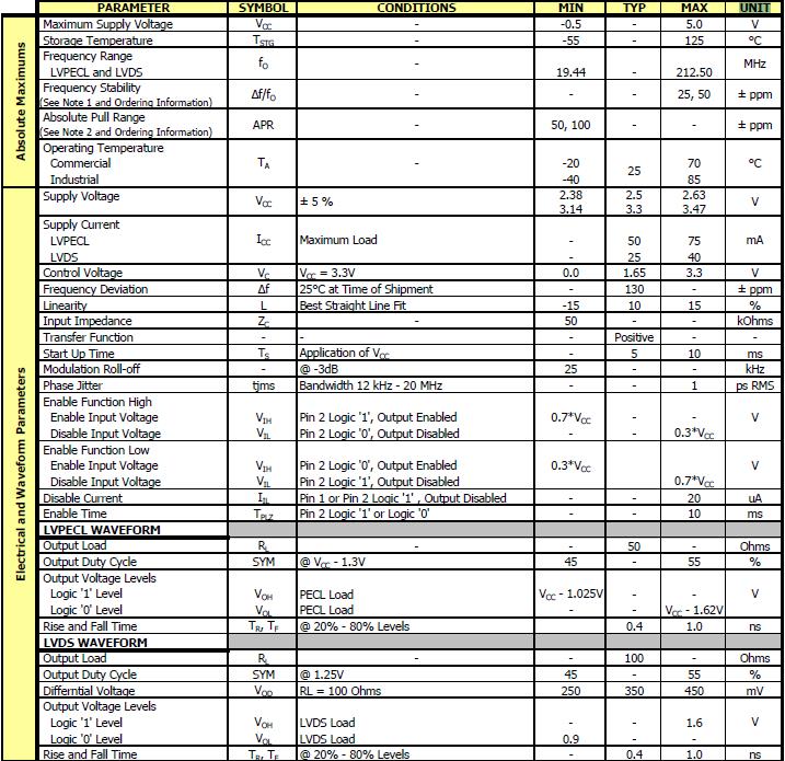 YD 3.3V | None | CMOS | 1 至 66 | <2 ps RMS | 5.0 x 3.2 x 1.3 | 4 | 超低抖動 |