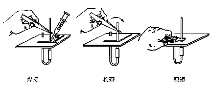 4)用鑷子轉(zhuǎn)動引線,確認(rèn)不松動,然后可用偏口鉗剪去多余的引線.