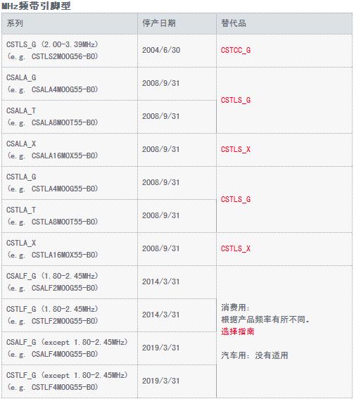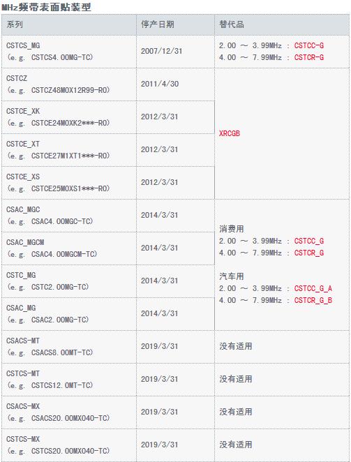 這次一共有三種類型的村田晶振被判出局,分別是MHZ頻帶表面貼裝型、MHZ頻帶引腳型、KHZ頻帶引腳型。接下來,壹兆電子會(huì)將Murata晶振停產(chǎn)的產(chǎn)品型號(hào)、日期和可代替產(chǎn)品料號(hào)完整的提供,請(qǐng)廣大新老客戶按照型號(hào)或系列對(duì)照,若有自己常用的型號(hào)請(qǐng)及時(shí)與我司壹兆電子業(yè)務(wù)人員聯(lián)系!