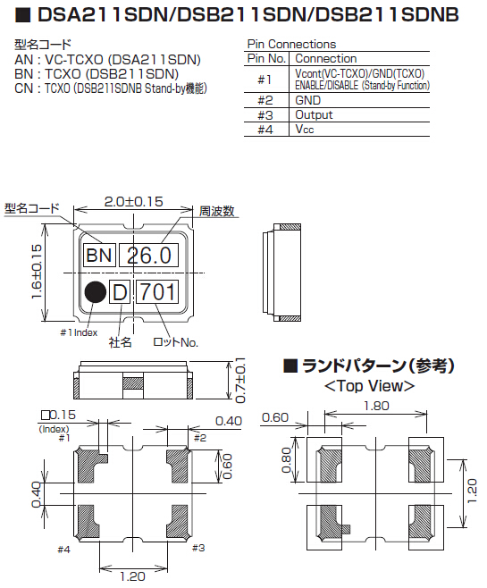 ? ? ? ?壓控溫補晶振DSA211SDN,KDS無限通訊設備晶振,有源晶體振蕩器,2016mm體積的壓控溫補晶振(VC-TCXO),是目前有源晶振中體積最小的一款,產品本身帶溫度補償作用的石英晶體振蕩器,該體積產品最適合于GPS,以及衛星通訊系統,智能電話等多用途的高穩定的頻率溫度特性晶振.為對應低電源電壓的產品.(DC+1.8V ± 0.1V to +2.9V ± 0.1V 對應IC可能) 高度:最高0.8 mm,體積:0.0022 cm3,重量:0.008 g,超小型,輕型,低消耗電流,表面貼片型產品.(可對應回流焊)無鉛產品."1XXC26000MAA"滿足無鉛焊接的高溫回流溫度曲線要求,帶有AFC(頻率控制)功能,Enable/Disable功能,產品本身可根據使用需要進行選擇.