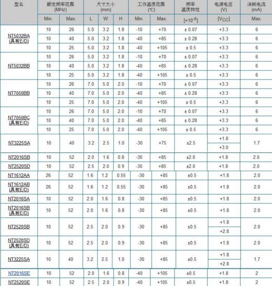 下面是日本電波工業株式會社(NDK)2017年最新的溫補晶體振蕩器型號及參數對照表: 因為世界工業、科技、互聯網大發展對于晶振產品的需要加大,不光是供應數量上的加大,對于晶振技術要求也越來越高,一些普通的石英諧振器和石英振蕩器,已經滿足不了特別高端高要求化的產品。貼片晶振的體積可以說是縮小到不能再縮小的地步,就是掉在地上你也不一定能看見,是容易令人忽略的小小的一顆電子元件,就連溫補晶振最小的尺寸都是2.0*1.6mm的了。不過越有壓力就越有進步的空間,世界的發展還要靠有源晶振的進步才得能實現。